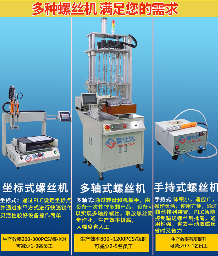 富仕達(dá)自動鎖螺絲機(jī)尺寸可根據(jù)產(chǎn)品尺寸大小及生產(chǎn)線情況來設(shè)計(jì),定制真正好用的自動鎖螺絲設(shè)備。