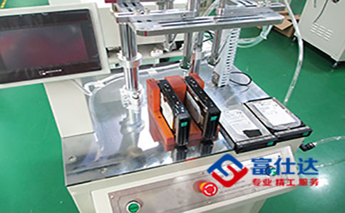產(chǎn)品為機械硬盤,需要鎖付兩面,每面各需要緊固2顆螺絲,如圖我們可以看到,設(shè)備上設(shè)有2個治具,可以放置2個產(chǎn)品,也就是說一次可鎖付2*4=8顆螺絲,設(shè)備采用的是電批,電批的優(yōu)點是方便,舒適,扭力穩(wěn)定度高且價格實惠!客戶使用這臺設(shè)備只需一名作業(yè)員放置產(chǎn)品就可輕松完成鎖付工序,快速提高工作效率,節(jié)省工人成本。