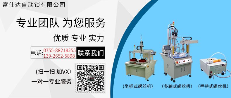 深圳市富仕達(dá)自動(dòng)化設(shè)備有限公司是國內(nèi)領(lǐng)先的以自動(dòng)鎖螺絲設(shè)備為核心的自動(dòng)化設(shè)備制造商,堅(jiān)持以客戶需求為中心,定制自動(dòng)化鎖螺絲方案,已有超過4000家企業(yè)采用富仕達(dá)定制的自動(dòng)鎖螺絲設(shè)備實(shí)現(xiàn)“機(jī)器換人”,節(jié)省大量人力成本。